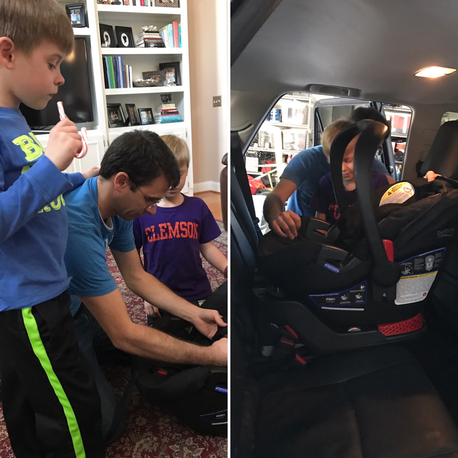 We spent Saturday doing a few things to get the house ready for the baby. It was a gorgeous day, so we sat outside too. On Sunday, we went to Sweet Frog for a sweet treat that afternoon and when we got home, my guys put the baby seat in my car. Sunday was also the first day since the summer I didn't take a Zofran for nausea (I made it without getting sick from December 24 until Caleb was born.).
